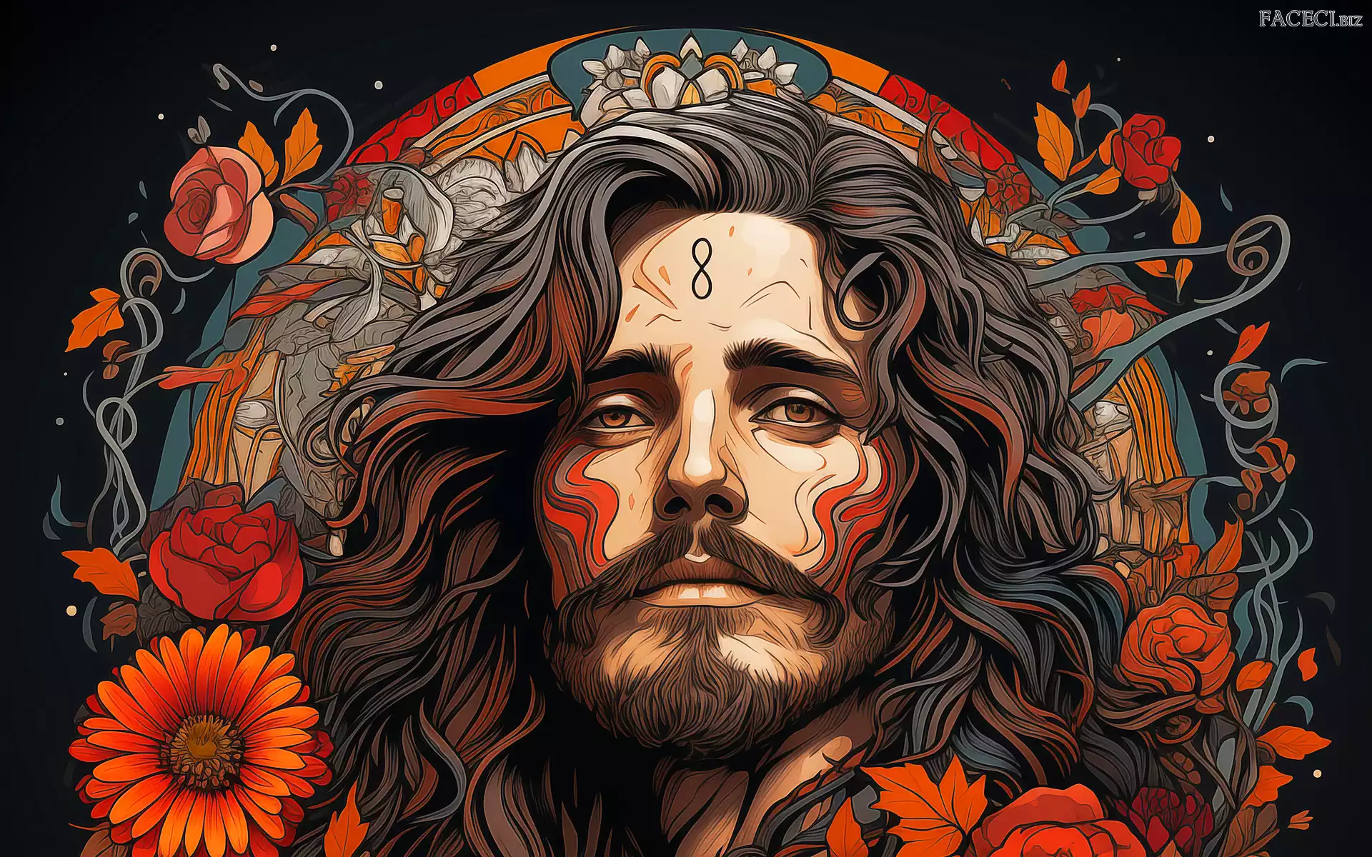 Zarost, Mężczyzna, Kwiaty, Grafika, Długowłosy - faceci.biz